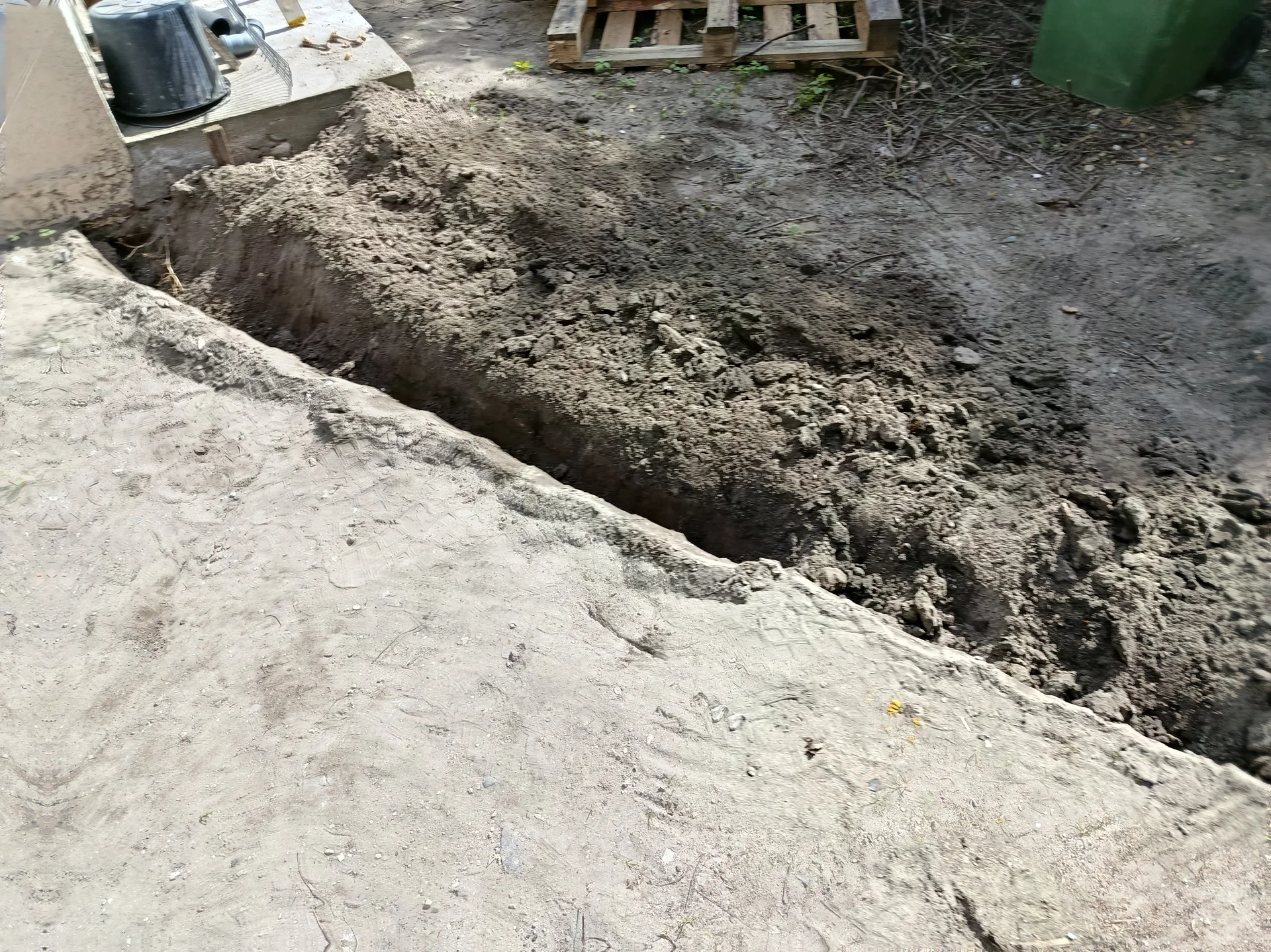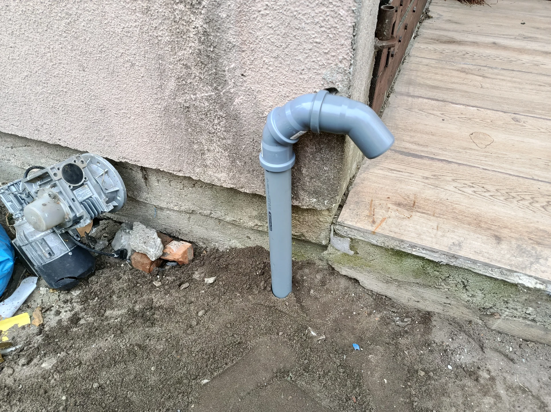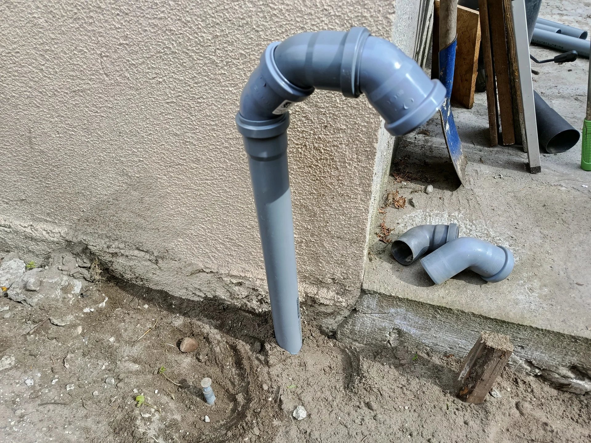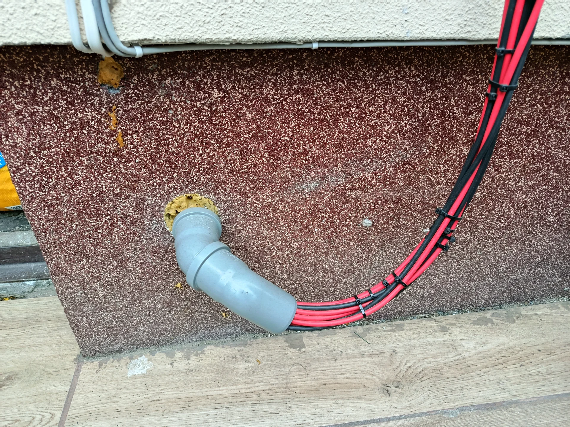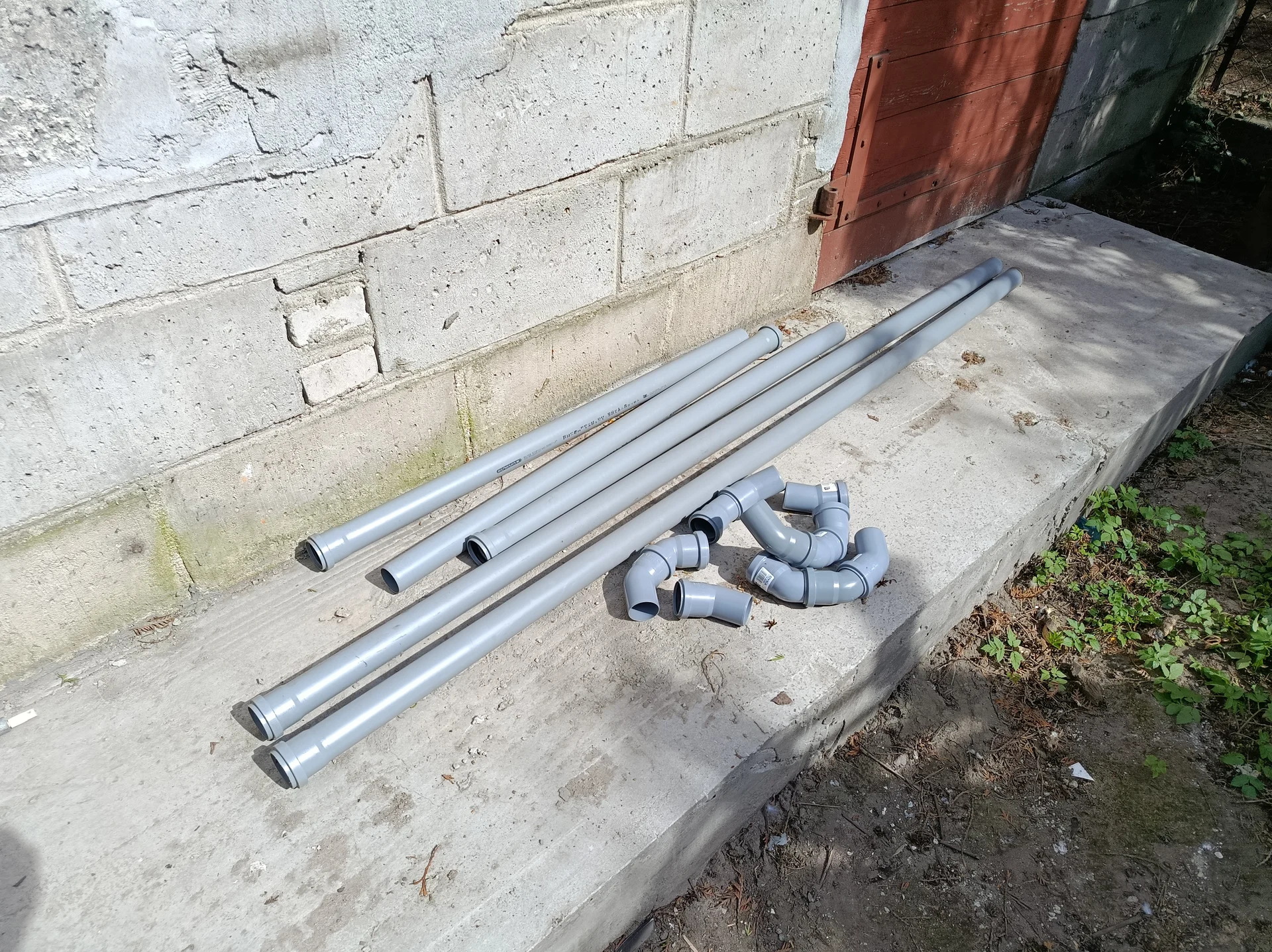Zanim jeszcze padła ostateczna decyzja co do lokalizacji paneli, wykonałem jeden praktyczny krok: wykopałem niewielki rów i ułożyłem w nim rury kanalizacyjne fi 50, które łączą budynek gospodarczy z instalacją przy domu głównym. Przez te rury poprowadzone zostaną docelowe przewody DC i AC instalacji PV.